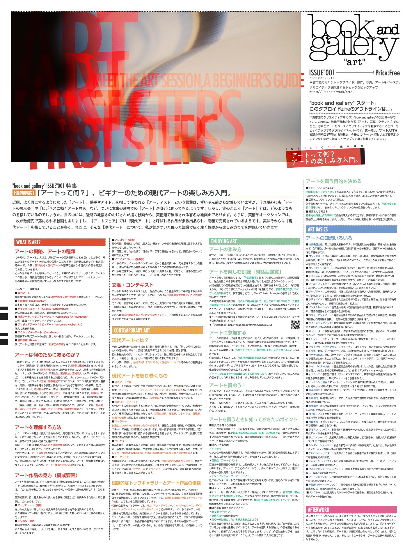 特別な 知識や準備はいりません。さあ、そんな小さな一歩から、アートの世界へ飛び込んで みませんか。